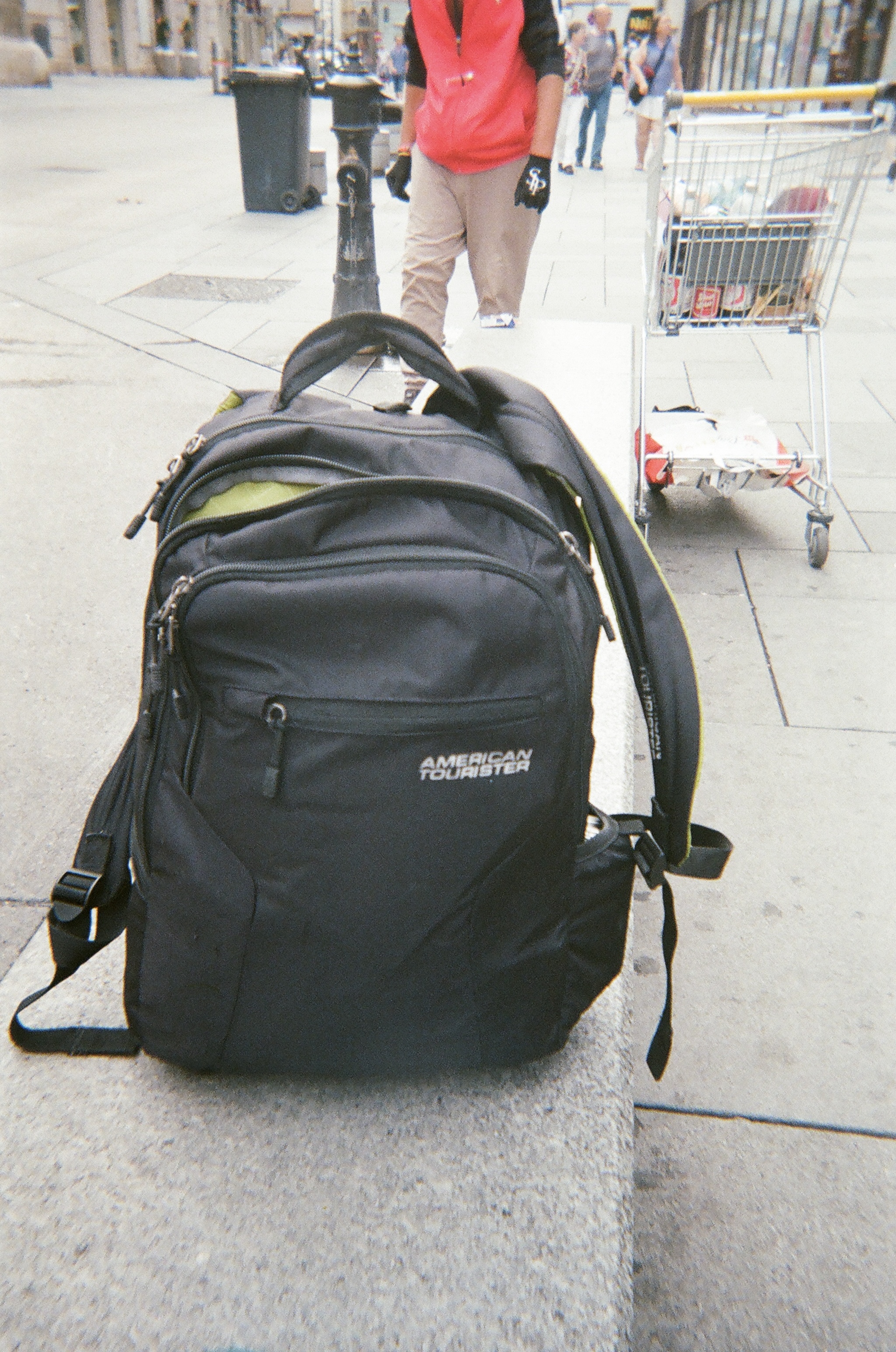 Я прилетел в аэропорт Вены из Ларнаки чтобы пересесть на поезд и добраться до Праги. Рюкзак с которым я путешествовал месяц.