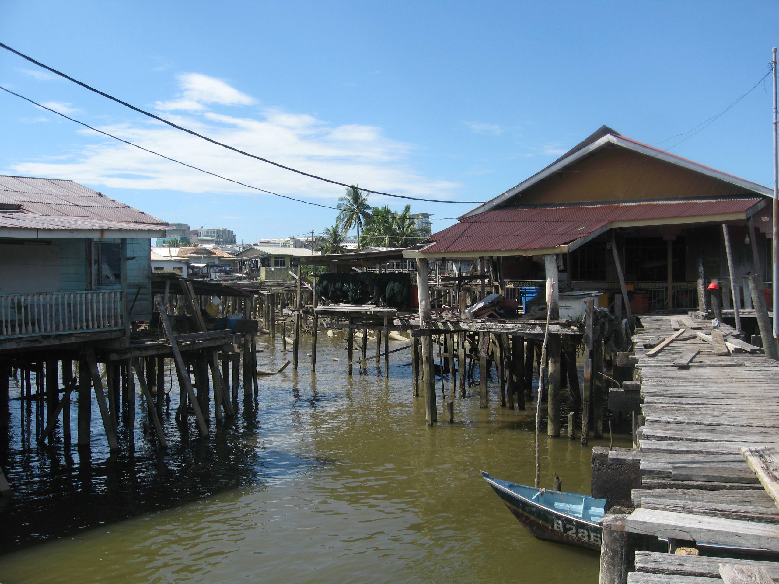 Посёлок на сваях тянется вдоль реки: деревянные настилы, лодки как такси, жизнь над водой.